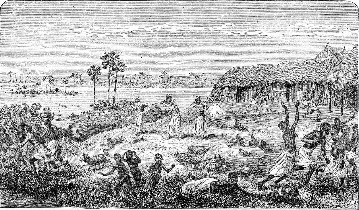 Эмин-Паша (настоящее имя Эдуард Шнитцер, 1840–1892) — немецкий врач, путешественник и колониальный деятель. Автор большого числа научных публикаций. В 1865–1874 гг. жил в Османской империи, где принял ислам, взяв при этом имя Мухаммед аль-Эмин. С 1876 г. был на службе у египетского правительства, сначала чиновником в Экваториальной провинции Судана, а затем (с 1878 г.) ее губернатором. В 1877–1889 гг. совершил несколько экспедиций в верховья Белого Нила и к Великим африканским озерам. В 1890 г., поступив на службу к германскому правительству, возглавил экспедицию в район, расположенный между озерами Виктория и Альберт. Но поскольку эта территория по договору 1890 г. оказалась исключенной из германской сферы влияния, экспедиция направилась в Танганьику, а затем в Камерун. Убит арабскими работорговцами на территории современного Конго.