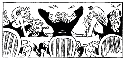 Из-за портьеры мама грозит пальцем. Это значит: не травмируй душу ребенка. Папа кивает головой: понятно.