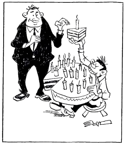 — Как водится, — сказал Мишка и отделил кусок торта для отца.