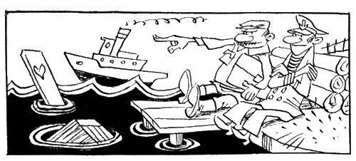 Директору икалось. Он думал, что это его вспоминает народный контроль, и аврально хватался за карман, где хранились стройматериальные накладные со словом «уплачено»… Но нет, директора поминал не контроль. Сам его председатель Леня Топодовский лично воздвигал директорский причал, гениально используя с этой целью казенные трапы. Попутно в территориальных директорских водах трудился, копая винтом канал, подконтрольный фрегат «Зюйд».