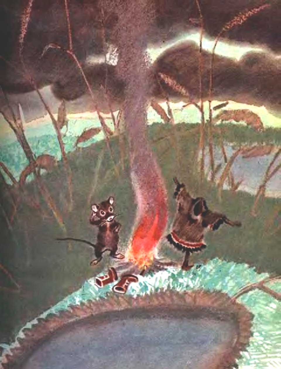 Дерево затрещало и повалилось. Мышонок сперва испугался, а потом увидел, что не дерево повалил, а стебель травы.