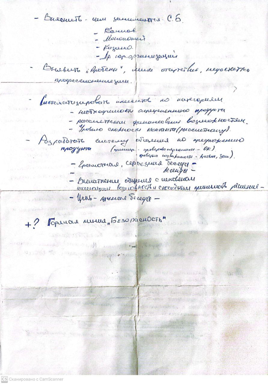 Сейчас вспоминать эти мысли немного странно, без встреч большинство наших вопросов вполне решается. Перечитывая, не увидел ничего нового, уникального или интересного. Может потому, что мысли не совсем мои, давно известные или тривиальные. Сложно судить. Способы работы указаны старые. В интернете технологий переговоров, в целях создать о себе впечатление хватает. С другой стороны было бы странно найти новые мысли в своих же старых бумагах.