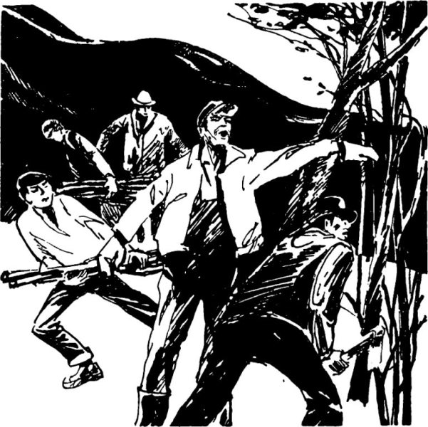 Очень жарко было у воды, но тут, в лесу, вдали от берега, было просто невыносимо: сюда не долетал даже самый слабый ветерок. В душном влажном воздухе назойливо вились комары, донимая своими укусами утомленных зноем людей. Кен и Поль валили дерево, выбранное Джейком Онаманом; потом они втроем топорами срубали с него ветви.