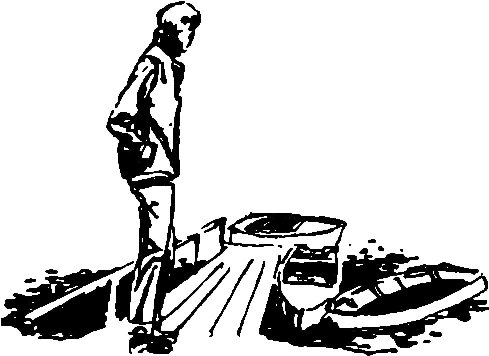 Собрав свои вещи так, чтобы их можно было захватить все сразу, Кен стал спускаться по тропинке к озеру. Станционные огни слабо освещали пристань, но за ней простиралась сплошная черная мгла. Моторная лодка тихо покачивалась на воде у причала, где Уоррены оставили ее месяц назад.