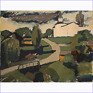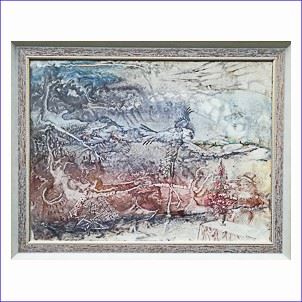 Wooden baguette, wooden passepartout, museum glass, private collection Based on painting: ‘Borresö Himmelbjorgegnen’, 1912.