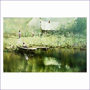 Wooden baguette, wooden passepartout, museum glass, private collection Based on painting: A Tranquil Pond, 1890.