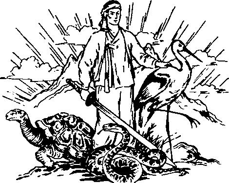 Затем развязал и отбросил пояс, и из него появилось Божество Дальних Дорог.