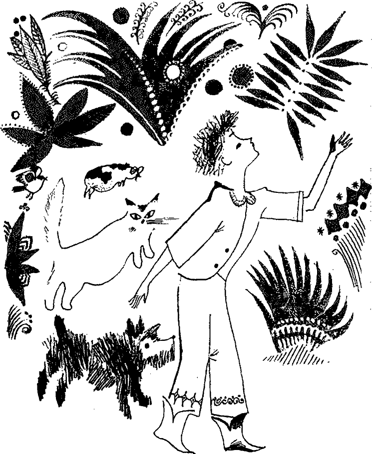 Как мне это удалось — долго рассказывать. Было трудновато! Приходилось следить, чтобы башмаки, ухо или палец не остались случайно на бумаге. Тогда пиши пропало! Представляете себе, каков бы я был без уха и пальца? Да и таких красивых башмаков я бы, наверное, не нашел.