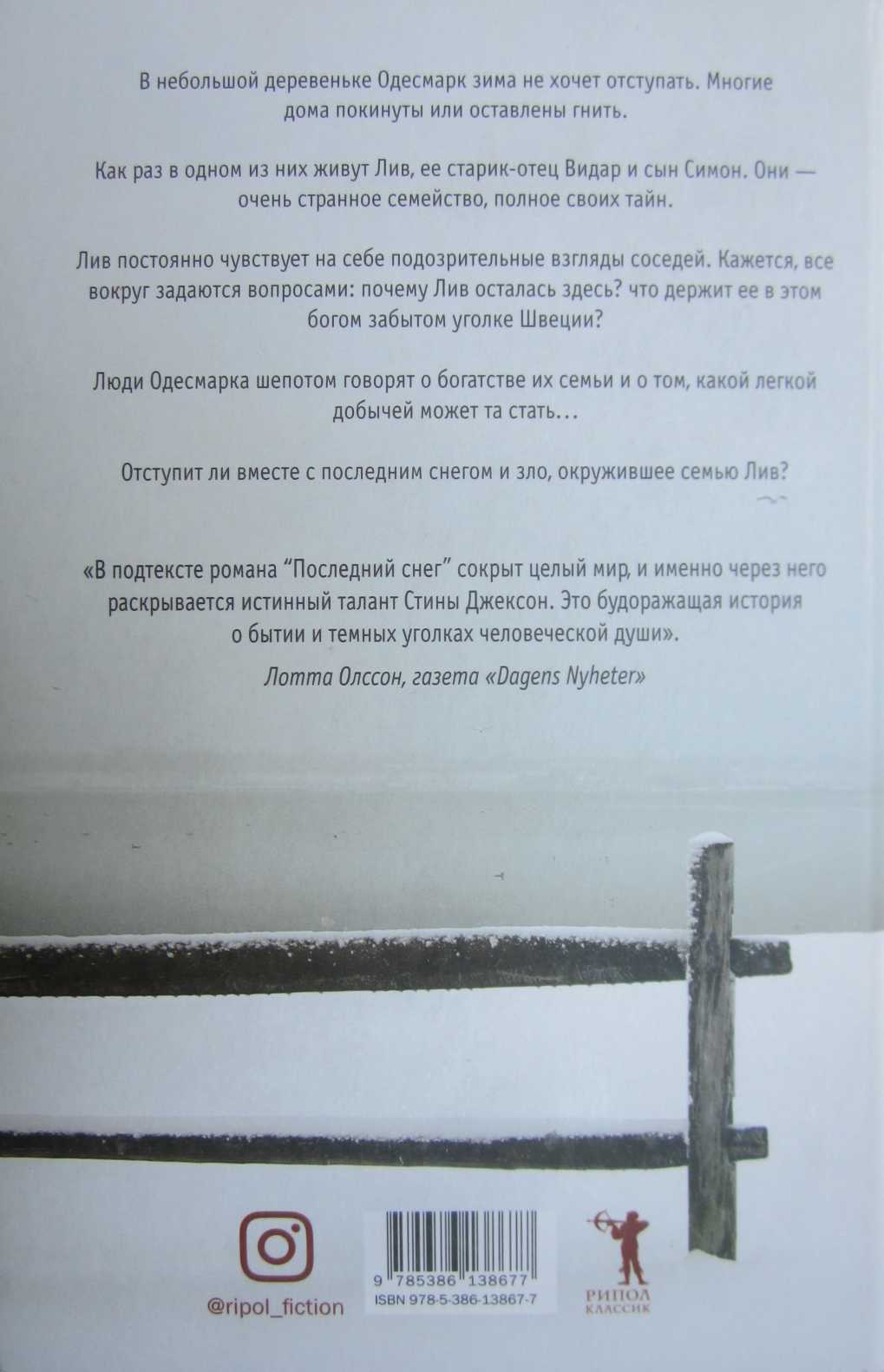 Йонни просил ее уехать с ним. Вскоре после того, как его выпустили, он появился у нее на пороге. Она думала, что Йонни будет злиться на нее за то, что сделал Симон, но он сжал ее в объятиях и сказал, что хочет забрать с собой. Подальше от всех этих неприятных воспоминаний. И она уже почти согласилась поехать с ним, хотя и знала, что ему нельзя доверять. В самом деле, такое простое решение — сесть на пассажирское сиденье и позволить кому-то везти тебя в неизвестном направлении. Но Лив знала, что так будет неправильно. Так она себе не поможет. Если она хочет выбраться отсюда, она должна все сделать сама.