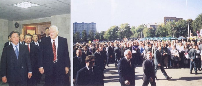 Слева направо: Губернатор Московской области Б. В. Громов, Глава Администрации Мытищинского района А. Е. Мурашов, Премьер-министр Литвы А. Бразаускас