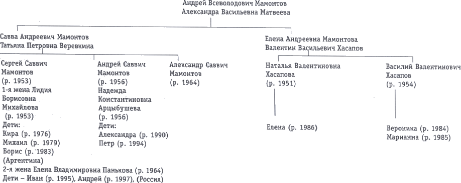 В процессе работы над рукописью часто приходилось обращаться за советом к потомкам. Иногда за одним столом собирались все пятеро правнуков Саввы Ивановича Мамонтова, чтобы уточнить с автором некоторые подробности и события из жизни прадеда и других предков. Каким-то внутренним чувством угадывалось и корректировалось направление мысли о событиях в России тех лет.