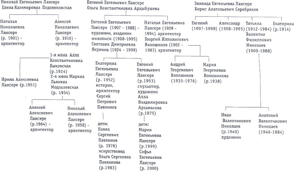 Александр Ефимович Мурашов, в то время заместитель, а ныне Глава администрации Мытищинского района, дал телефон правнука С. И. Мамонтова, Николая Александровича Щельцина, через которого удалось познакомиться с родственниками К. Д. Арцыбушева – Светланой Дмитриевной Лансере (невесткой дочери К. Д. Арцыбушева – Ольги) и ее сыном Евгением Евгеньевичем – его правнуком.