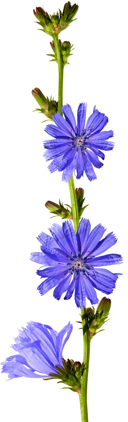 Корень длинный, стержневой, мясистый. Стебель прямой, прямостоячий, прутьевидный, зеленый или сизовато-зеленый, более-менее разветвленный, шершавый, высотой 15–150 см. Прикорневые листья перистораздельные или цельные, краезубчатые, стеблевые немногочисленные, уменьшенные, от ланцетно-яйцевидных до ланцетных. Соцветия — корзинки, одиночные или скученные, цветки крупные, ярко-голубые, язычковые. Плод — трех-пятигранная продолговатая семянка.