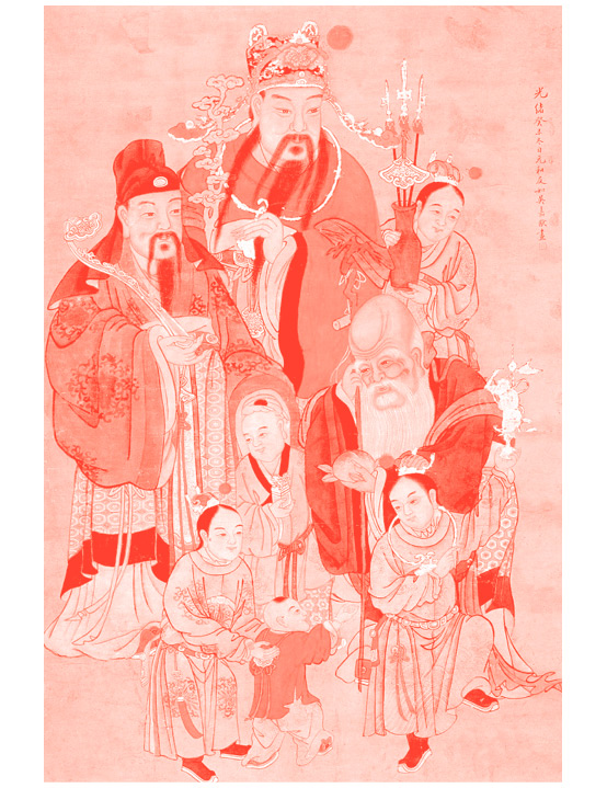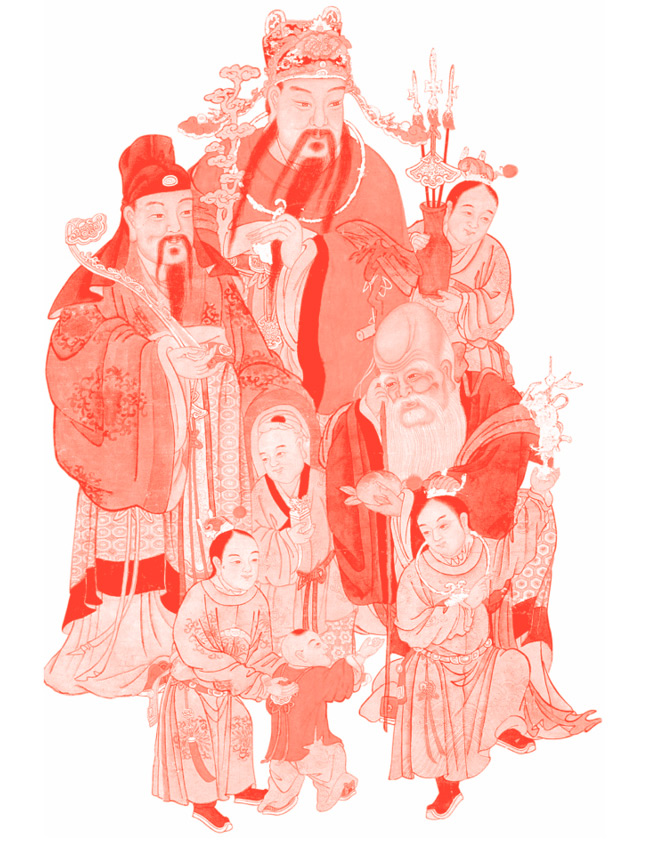 Даосские боги удачи (Фу), процветания (Лу) и долголетия (Шоу). Настенный свиток, эпоха Мин.