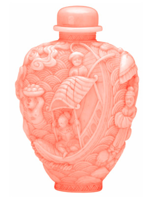 Сострадающая Гуаньинь, полное имя которой означает «Внемлющая звукам мира», — божество, пришедшее из индийского буддизма. Изначально это был бодхисатва — мужчина: на обнаруженных в Дуньхуане изображениях времен империи Тан у него есть тонкие усики и бородка. В Китае, однако, постепенно изменились и его значение, и внешний вид: он приобрел женские черты и стал ассоциироваться со спасением и деторождением. На фарфоровых фигурках времен Мин у Гуаньинь уже нет усиков, а в руках она часто держит младенца. Впрочем, несмотря на женский облик, эту богиню никогда не изображают с маленькими стопами — последствием мучительной традиции бинтования, от которой с XII века страдали многие представительницы верхних и средних классов китайского общества. Изображение Гуаньинь повсеместно встречается в буддийских храмах. Особенно ей поклоняются те, кто желает завести детей.