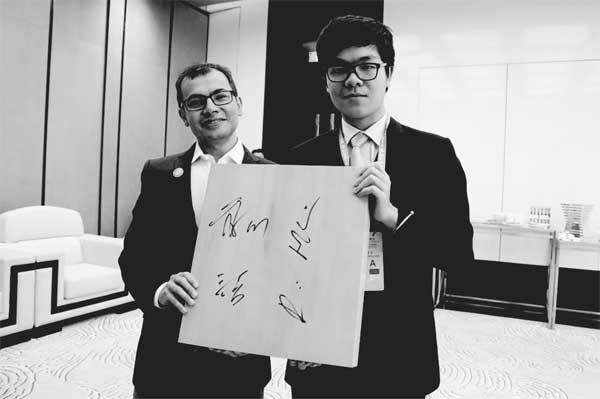 Рис. 1.4. Ричард Рашид, руководитель отдела исследований компании Microsoft, на презентации функции распознавания голоса, использующей глубокое обучение. 25 октября 2012 года в Тяньцзинь в Китае. Две тысячи китайских студентов в аудитории увидели субтитры, созданные с помощью автоматического распознавания речи, которые следовали за устным переводом на китайский язык. Это стало всемирной сенсацией.