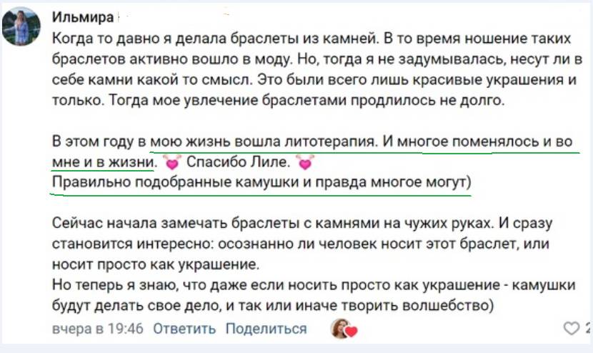 «Очень хочу изменить свою жизнь к лучшему. Знаю, что камни могут помочь. Очень хочу найти свой камень-талисман. Для любви и отношений, уверенности, карьерного роста и денег…»