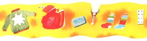Дівчинка й нямлик навшпиньки скрадалися коридором і, здавалося, їм пощастить тихенько вислизнути з квартири. Але нямлик зачепив великого рюкзака, і на нього посипалися гірські лижі, палиці й льодоруби.