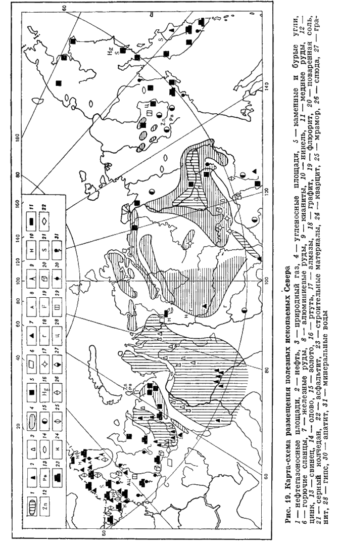 Острая нехватка ряда полезных ископаемых (апатиты, медно-никелевые руды, золото и др.) привела к тому, что уже в 20–30-е годы стали создаваться очаги промышленности на Крайнем Севере: добыча апатита в Кировске, медно-никелевых руд в Мончегорске и Норильске и т. д.