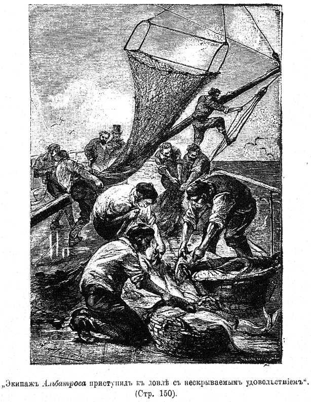Альбатросъ погибъ, но люди не погибли. Робюру, какъ мы помнимъ, удалось замедлить паденіе, а затѣмъ весь экипажъ спасся въ каучуковой лодкѣ.