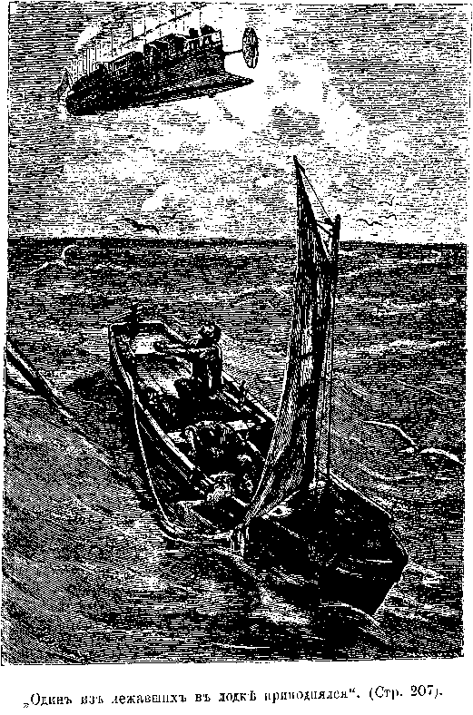 Провидѣнію угодно было сохранить несчастныхъ. Ихъ замѣтилъ плывшій мимо корабль и взялъ къ себѣ на бортъ не только ихъ, но и плывшіе по водѣ обломки аэронефа. Инженеръ сказалъ, что съ его кораблемъ случилось столкновеніе, и его больше не стали разспрашивать.