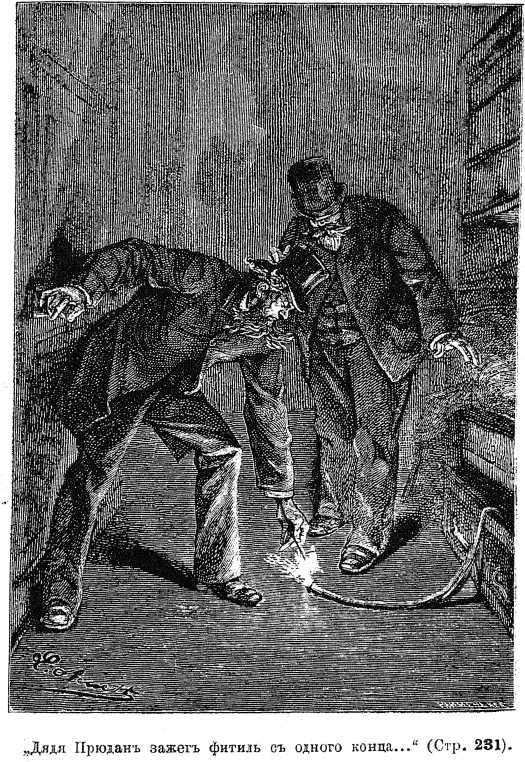 — И къ тому же недорого! — прибавилъ дядя Прюданъ, передавая изобрѣтателю пакетъ со ста-тысячами долларовъ въ уплату за купленное изобрѣтеніе.