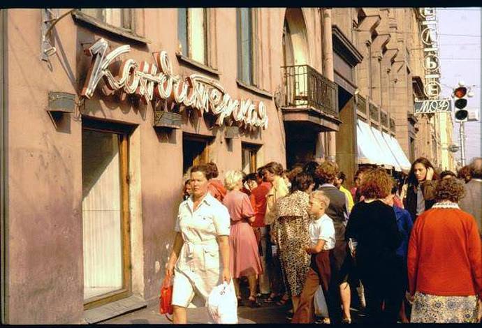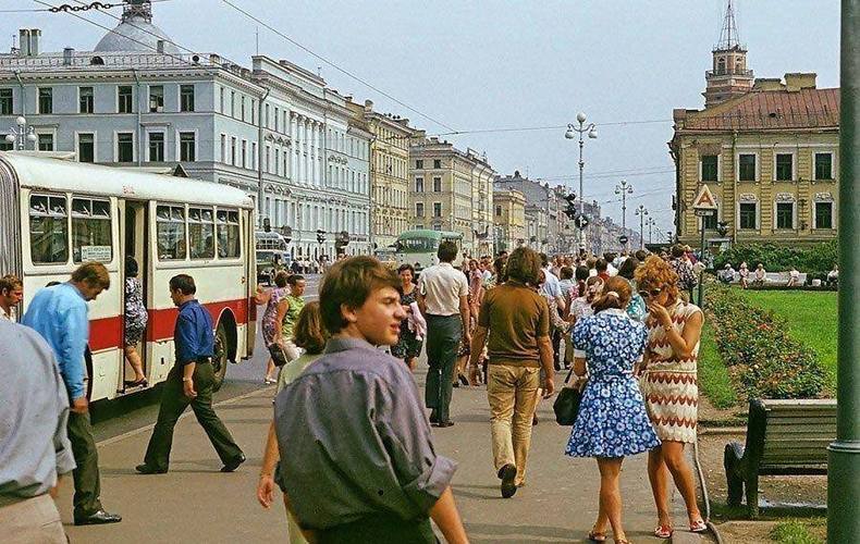 Тот самый советский родной Ленинград. Спешащие по своим делам люди. Одеты совсем не так, как в будущем. Хватает темных оттенков. Мужчины почти все в пиджаках и плащах, лишь молодежь выделяется на их фоне разнообразием одежды. Женщины, наоборот, одеты ярче. Кроме откровенных бабок. По причине тепла на девушках не так много одежды. Я только верчу головой по сторонам. Столько красоток!