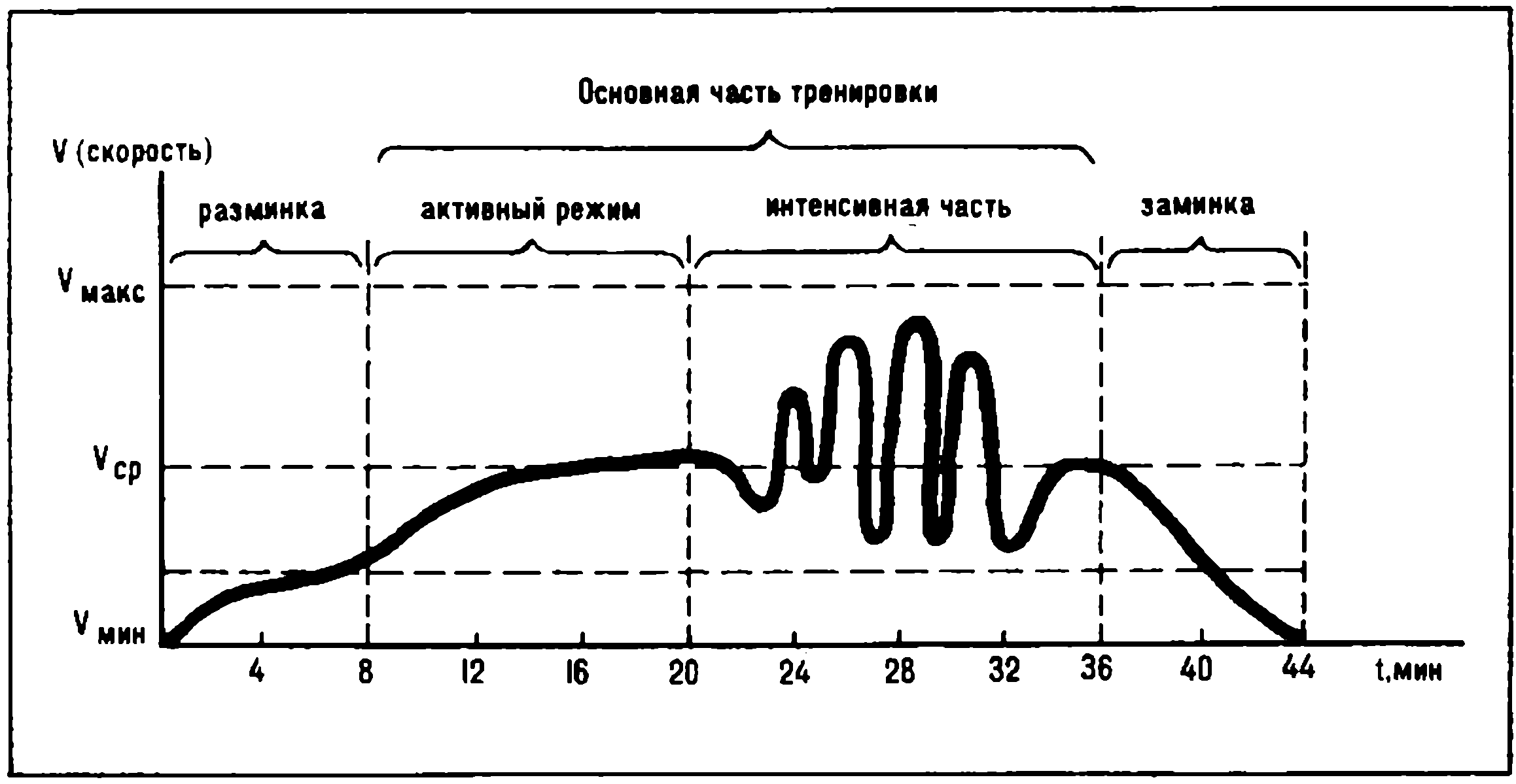 Не вдаваясь в тонкости техники оздоровительного бега, можно порекомендовать график беговой тренировки, приведенный на рис. 13. Вообще же бегать легко (это не сверхсложная акробатика и не фигурное катание, а самое естественное движение, знакомое всем с раннего детства), бегать приятно (разве не приятно чувство свободного перемещения, чувство внутренней свободы, позволяющее на время уйти от обычных забот и мыслей), бегать полезно (об этом уже столько сказано!).
