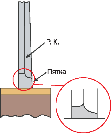 Радиусный переход РК в пяту клинка должен быть одинаков с двух сторон (