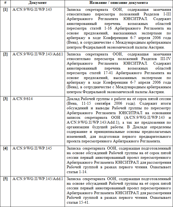 Наконец, подготовительные материалы будут полезны при синхронизации Регламента на разных языках. Русский является одним из официальных языков организаций системы ООН, поэтому русский текст Регламента признается аутентичным. Рабочие документы по согласованию пересмотренного текста правил по большинству тоже представлены на русском и доступны на сайте ЮНСИТРАЛ.