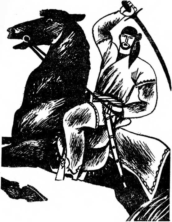 Опершись о землю слабеющей рукой, в последний раз приподнялся он и, как беркут, которого не удержали в вышине сломанные крылья, с тоской во взоре поглядел вдаль. Красный туман застилал глаза, огненно-красными показались ему и земля, и трава, и камни, и даже собственные руки — костистые, поросшие жесткими волосами; с криком метались в адском огне, не находя выхода, несущиеся навстречу пулям конные воины…