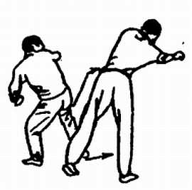 Фиг. 220. Скручивая талию вправо (влево), я наношу удар правой (левой) пяткой по затылку.