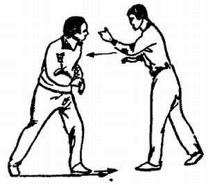 Фиг. 208. Противник останавливается и немного отступает, чтобы избежать моего зацепа и удара ладонью.