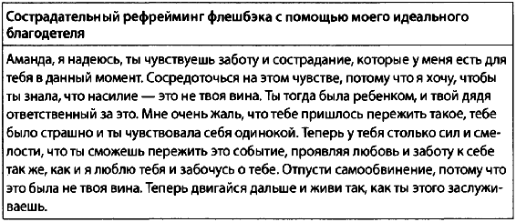 Выполняя не спеша упражнения в главах 9 и 10, вам, возможно, удалось отыскать новые идеи и переосмыслить свой травматический опыт. Используйте это, чтобы помочь себе привнести сострадание и заботу в свои травматические воспоминания и направить их к себе.