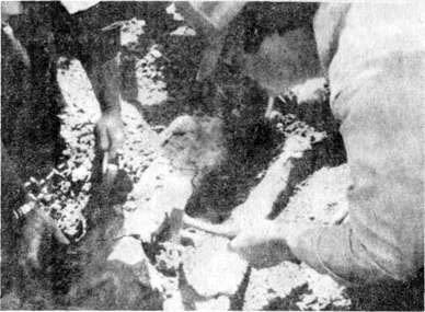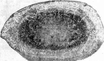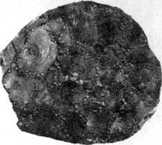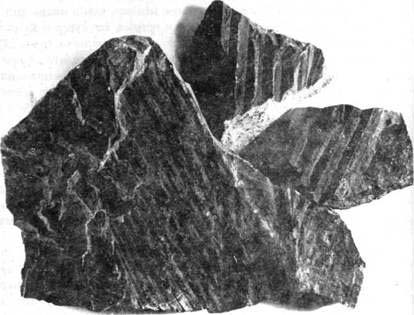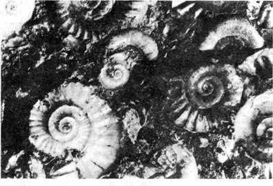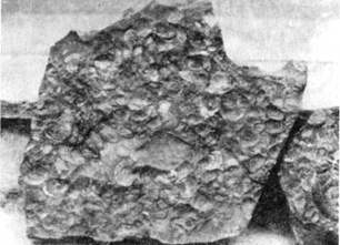 Рис. 71. В куске магнитного железняка близ Холкирка (провинция Альберта) были найдены многочисленные экземпляры двустворчатых моллюсков в окаменелом состоянии. Половинки этих моллюсков были сомкнуты, что указывает на то, что их гибель произошла мгновенно.
