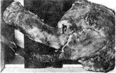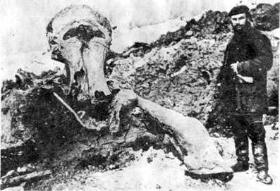 Рис. 79. Сотни тысяч трупов мамонтов были обнаружены в замороженном состоянии в зоне вечной мерзлоты в Сибири и на Аляске. Ученые, исследовавшие эти регионы, кормили своих собак замороженным мясом, отделявшимся от скелетов мамонтов.
