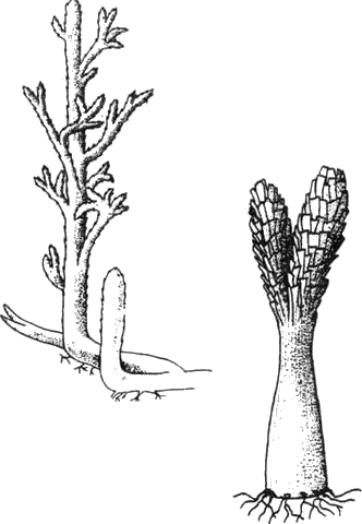 рис. 75). Длина их стволов достигает порой более 60 м. Эти деревья были обнаружены в десятках метров от осажденных наводнением продуктов вулканической деятельности. Стволы плотно прижаты друг к другу, как это бывает в завалах.
