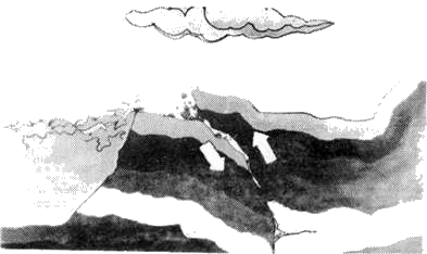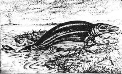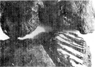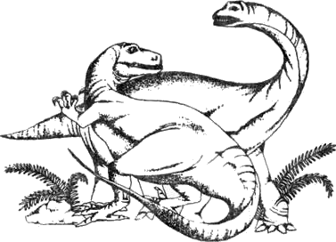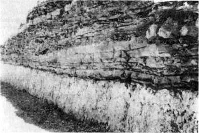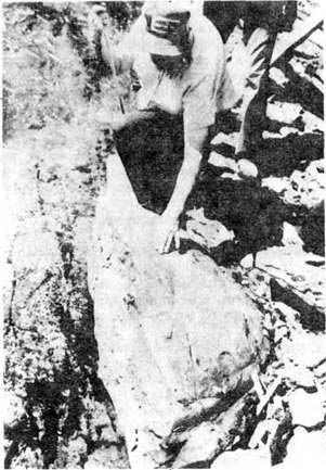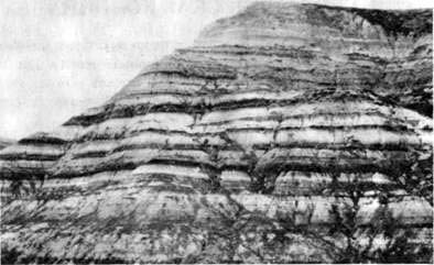 Рис. 78. Окаменевшие остатки целых скелетов динозавров ученые часто обнаруживают в слоях вулканического пепла близ Драмхеллера. Разумно предположить, что эти громадные пресмыкающиеся погибли внезапно, при катастрофических обстоятельствах.