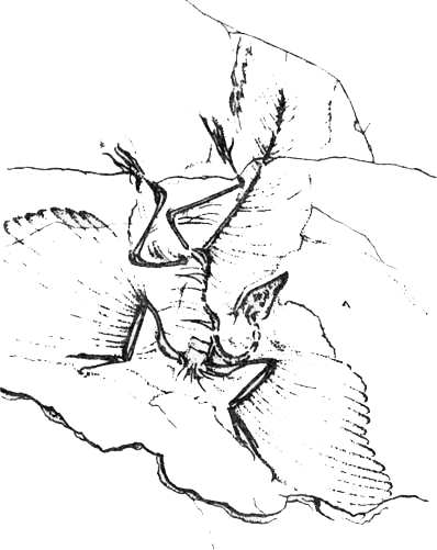 «Кроме окаменевших костей, ученые нашли окаменевшие отпечатки кожи динозавра, позволившие им судить о внешнем виде животного. Они, кроме того, открыли и извлекли ряд окаменевших отпечатков ног — следы последних шагов этого плотоядного, сделанных им перед смертью».