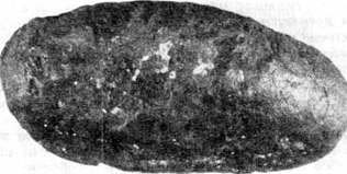 Рис. 73. Куски магнитного железняка, найденные в слоях пепла в Драмхеллере, часто содержат окаменевшие остатки растений и животных.