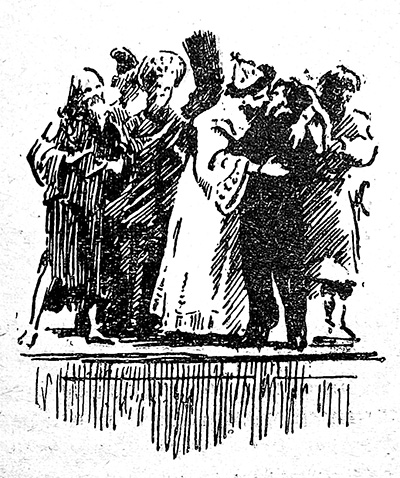 У вешалки толпилось много народа; капельдинер, завидев преображенцев, вынес им шинели, и они, одевшись, вышли.