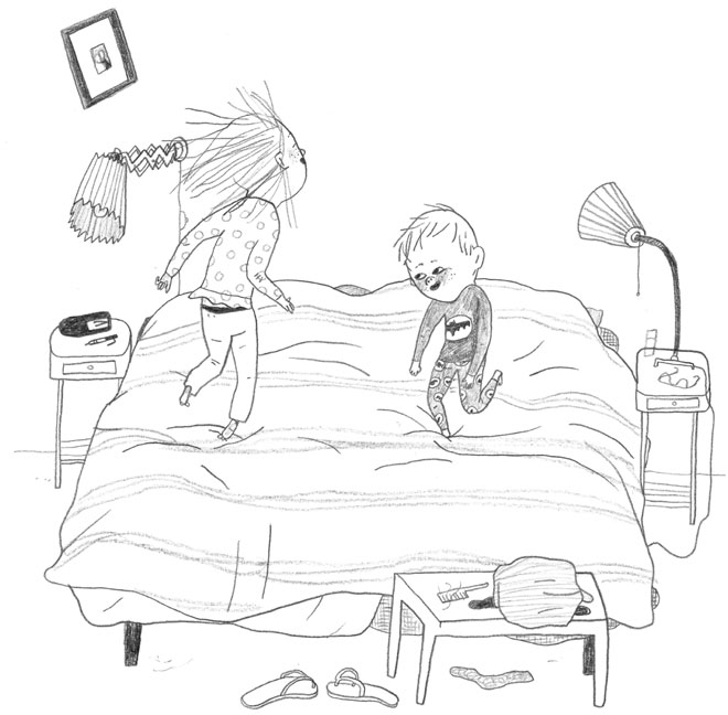 — А теперь прекращайте скакать, — сказал папа. — А то кровать развалится.