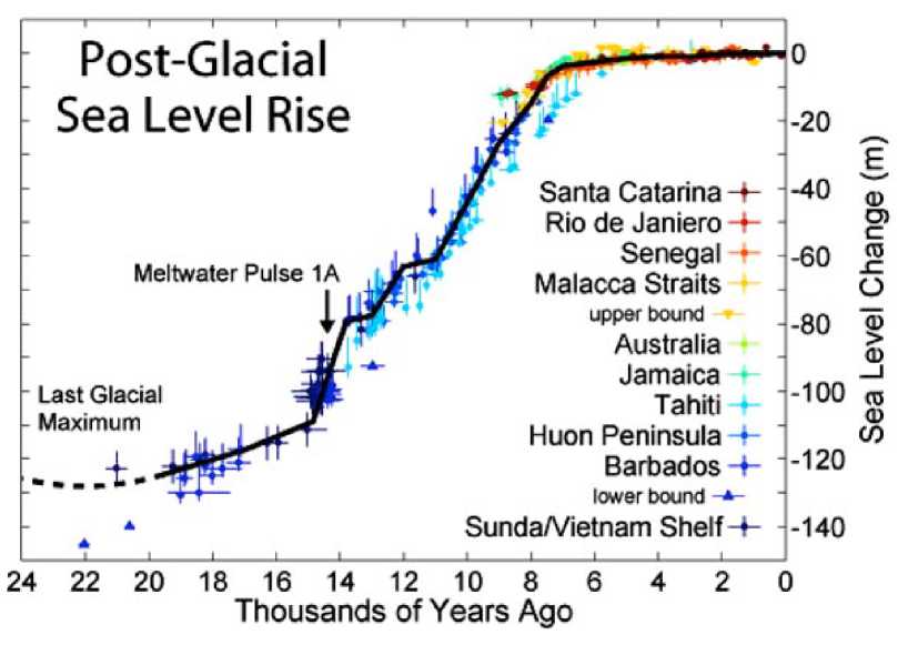 Кардинальные изменения происходят примерно 12 тысяч лет назад. В академической науке это время связывают с концом так называемого Ледникового периода, а в альтернативной литературе — с событиями Всемирного Потопа, при котором произошло существенное изменение положения полюсов планеты. Как бы то ни было данный момент времени характеризуется началом интенсивного таяния ледников, ранее покрывавших северо-восточную часть Северной Америки и Европу, и соответствующего подъема уровня Мирового океана, что привело в итоге к отделению Японских островов от материка.