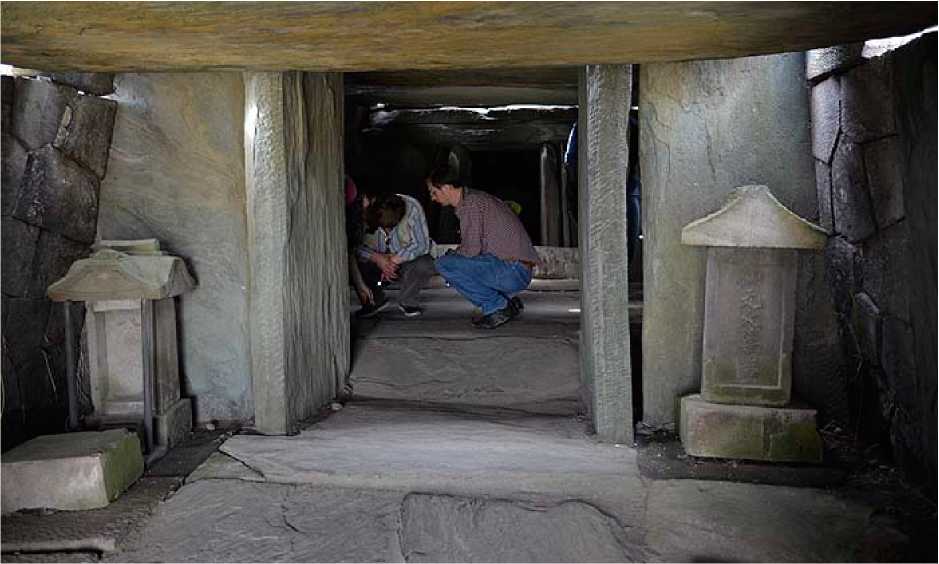 Сходство тории с аналогичными воротами в Азии представляется вполне логичным и естественным — как-никак предки современных японцев считаются ведь выходцами из Кореи и Китая. Зато поразительным оказывается сильное внешнее сходство тории с широко распространенной трапецеидальной формой окон и дверных проемов по другую сторону Тихого океана — в древних перуанских сооружениях. На это обратила внимание одна из участниц форума Лаборатории Альтернативной Истории еще до нашей экспедиции в Японию. Но на мой взгляд, даже гораздо большее сходство тории обнаруживают с огромными странными «воротами», изображенными на скале в перуанском Араму-Муру на берегу озера Титикака. Здесь, конечно, сверху не две «перекладины», а всего одна, но она также выходит своими концами за наклонные вертикальные «стойки» ворот. При изображении этих «ворот» на каменной поверхности скалы в этом не было никакой рациональной необходимости и требовало проведения дополнительной работы, но все-таки зачем-то это было сделано.