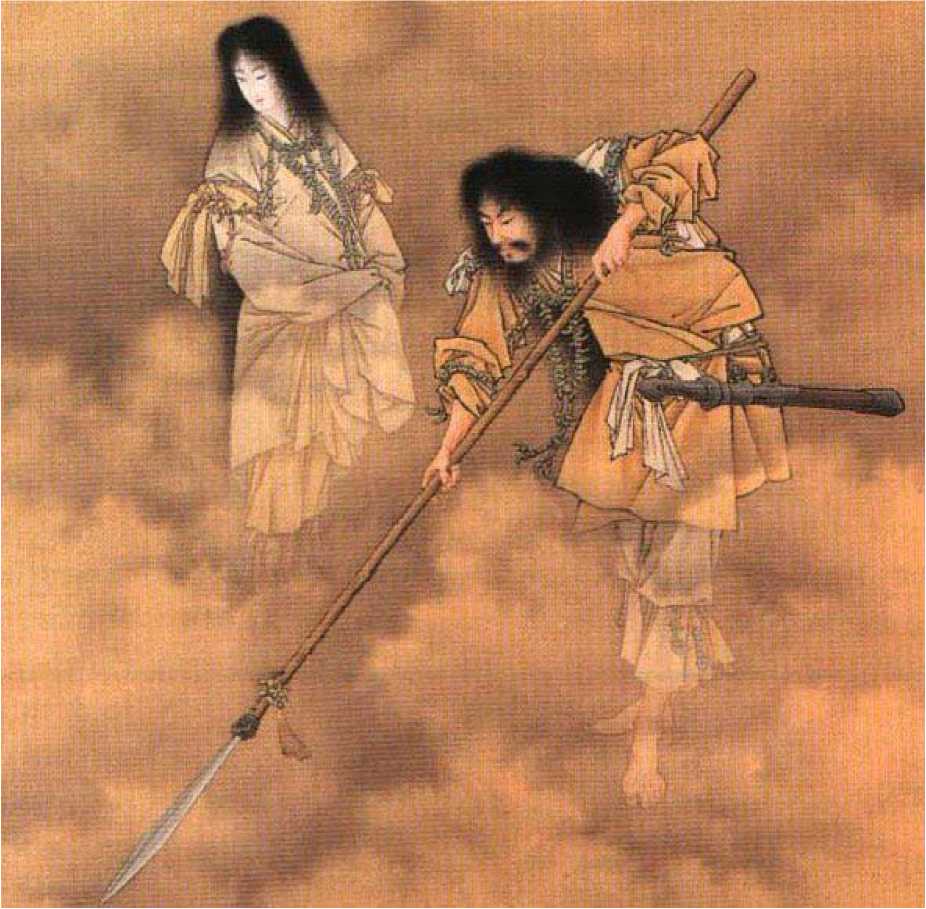 Согласно древней легенде, входящей в том числе в вышеупомянутые «Кодзики» («Записи дел древности»), императоры Японии являются прямыми потомками богини солнца Аматэрасу. Аматэрасу унаследовала Землю и через некоторое время послала своего внука Ниниги править Японскими островами, созданными ее родителями — богами Идзанаги и Идзанами.