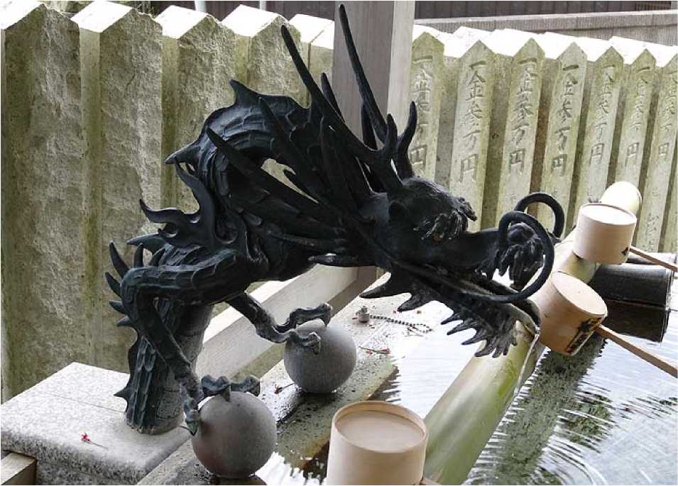 Рис. 131. Дракон, стерегущий сосуд для омовения перед храмом возле Иси-но-Ходен