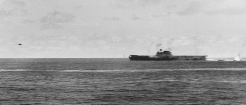 Совершенно непонятно что мог делать автор в кокпите своего самолёта, да ещё и на полётной палубе. Как он правильно указывает, от «Акаги» в вылете против кораблей противника должны были участвовать «ударные самолёты», то есть торпедоносцы обр. 97 («Накадзима» B5N2), а вовсе не пикировщики, гарантированно находившиеся в тот момент на ангарных палубах.