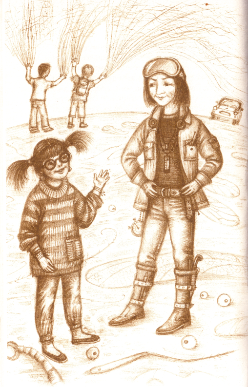 І знову бабуся Соля, перетворившись на владну й рішучу Соломію Джуру, нахилилася над пультом управління, набрала потрібні координати, і за мить наш старенький жовтий «Запорожець» уже стояв посеред уламків муляжів гігантських комах.