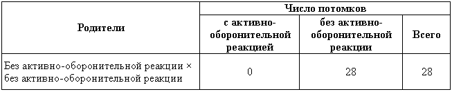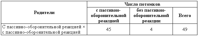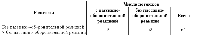 Таблица 3. Скрещивание пассивно-оборонительных собак с собаками без пассивно-оборонительной реакции