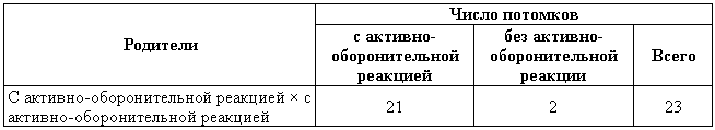 Таблица 6. Скрещивание собак с активно-оборонительной реакцией с собаками без активно-оборонительной реакции